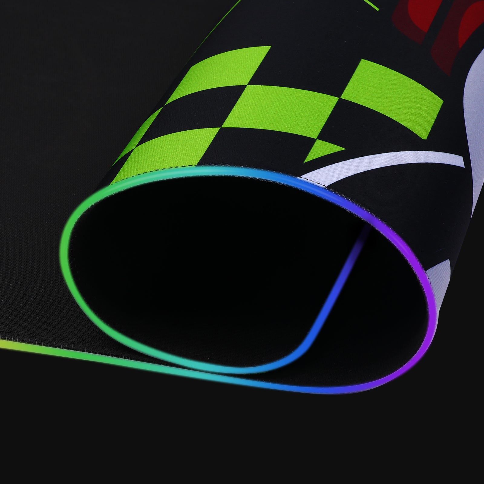 Dest mat with RGB? YES! This desk mat is built in 14 lighting modes to provide plentiful of possibilities. Simply press the button on the right corner to switch between colors and modes, single color or RGB color, as you wish. It can be a good companion and complement for keyboards with RGB backlight!