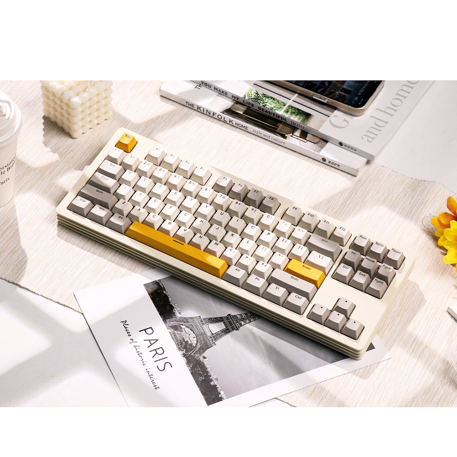 RGB light effects are classic and neat, and you can freely adjust the brightness and light speed. The LEDs are south-facing to avoid interference with cherry-profile keycaps. This orientation also ensures that the legends or characters on the keycaps are well-illuminated and easily visible, even in low-light conditions. Moreover, Ajazz AKC087 is compatible with OS on Windows/Mac. It surely meets the needs of each user to work efficiently or gaming/working status switching.