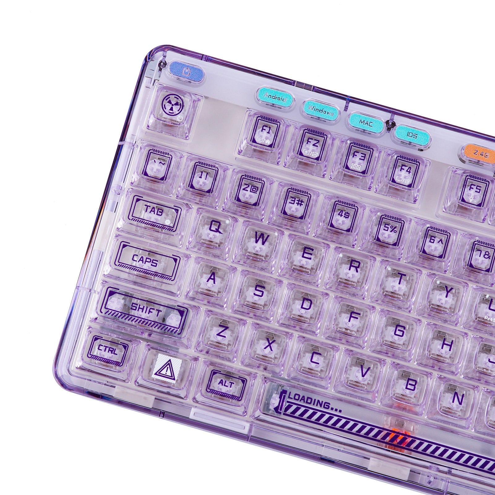 Designed with a transparent acrylic case, the F81 showcases its internal mechanics, creating a visually stunning effect. The GDA profile keycaps are made from PC material, enhancing the RGB lighting effects beneath. The keycap legends are durably crafted using 3D printing technology, ensuring longevity and resistance to wear.
