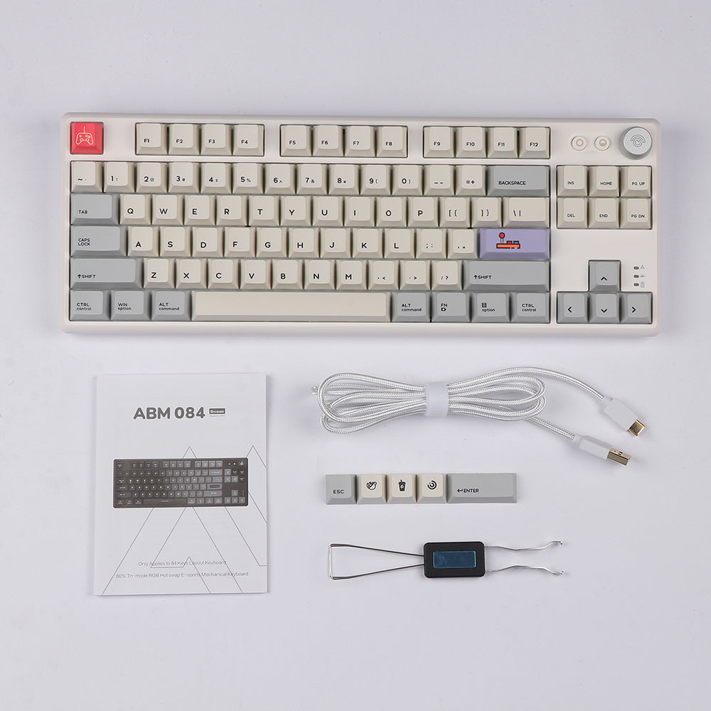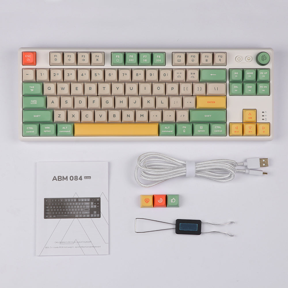 The ABM084 model comes with two types of keycaps, Cherry profile and KDA profile. Keycaps are made of top-grade PBT dye-subbed keycaps. Which are often considered the top choice for keycaps materials, even over ABS keycaps, as PBT is much more durable, oil-resistant and stays true to color. Top-grade keycaps are complemented with dynamic 16.8M RGB backlight. More than that, compatible software is available for those who loves more DIY settings. You can make it your own effects with the software.