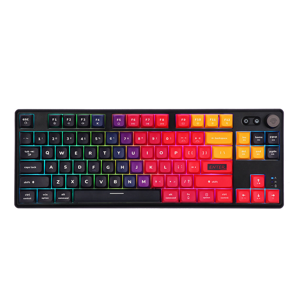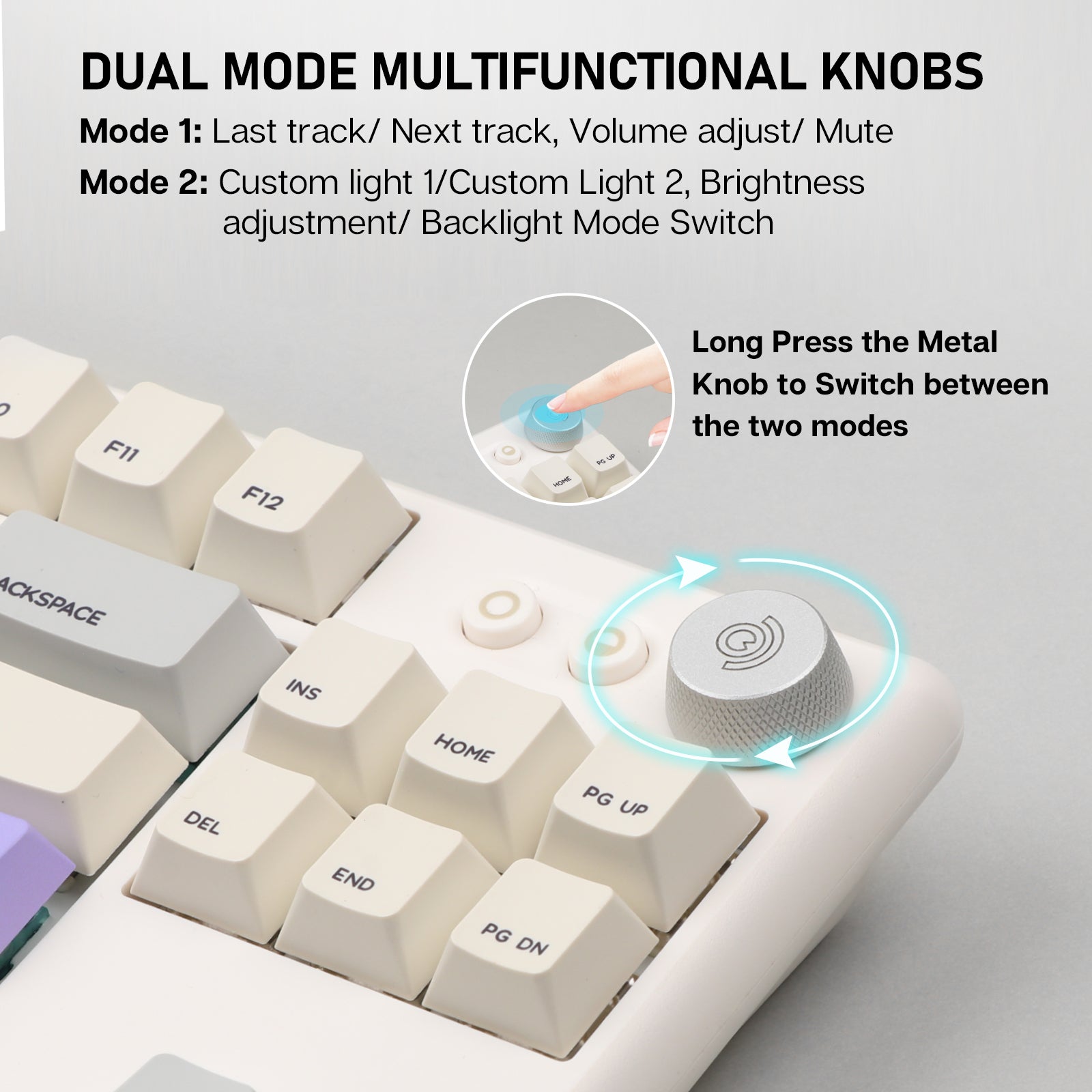 TKL Hot Swappable RGB 2.4Ghz/Bluetooth 5.0/Wired Mechanical Gaming Keyboard NKRO with Poron Foam, Aluminum Knob Control, 3000mAh Rechargeable Battery