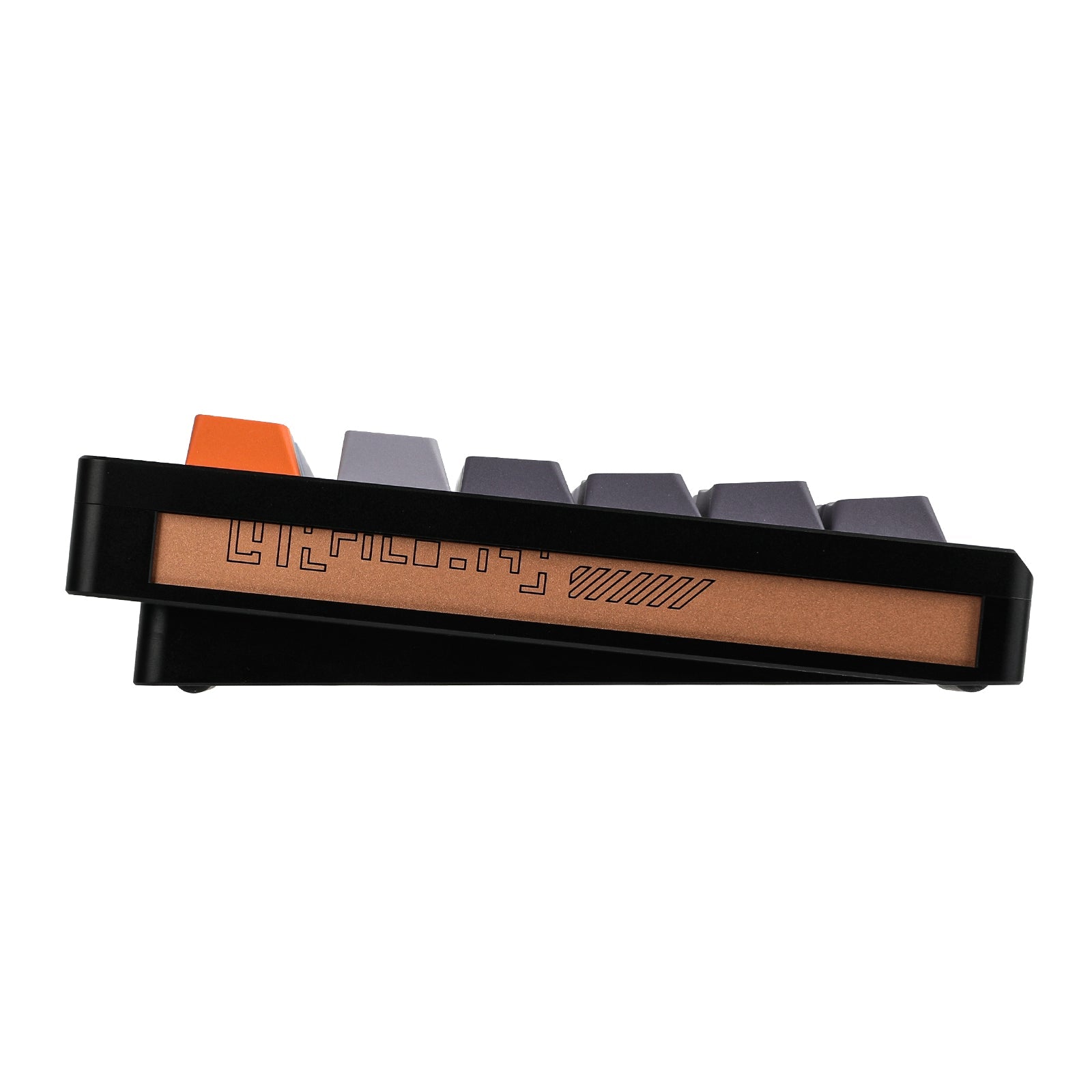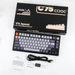 The CIDOO C75, with its sleek 75% layout, balances compactness and essential functionality, retaining all necessary keys including arrow keys, function row, and navigation/editing buttons on the right. It features a robust full aluminum case, adding a premium feel with a weight of 1.95kg. A metal volume knob on the top right corner enhances user control, complemented by an RGB bar on the left side for a striking cyberpunk aesthetic. Mystical characters embellish the side profile and back, infusing the keyboard with a sense of mystery and advanced technology.