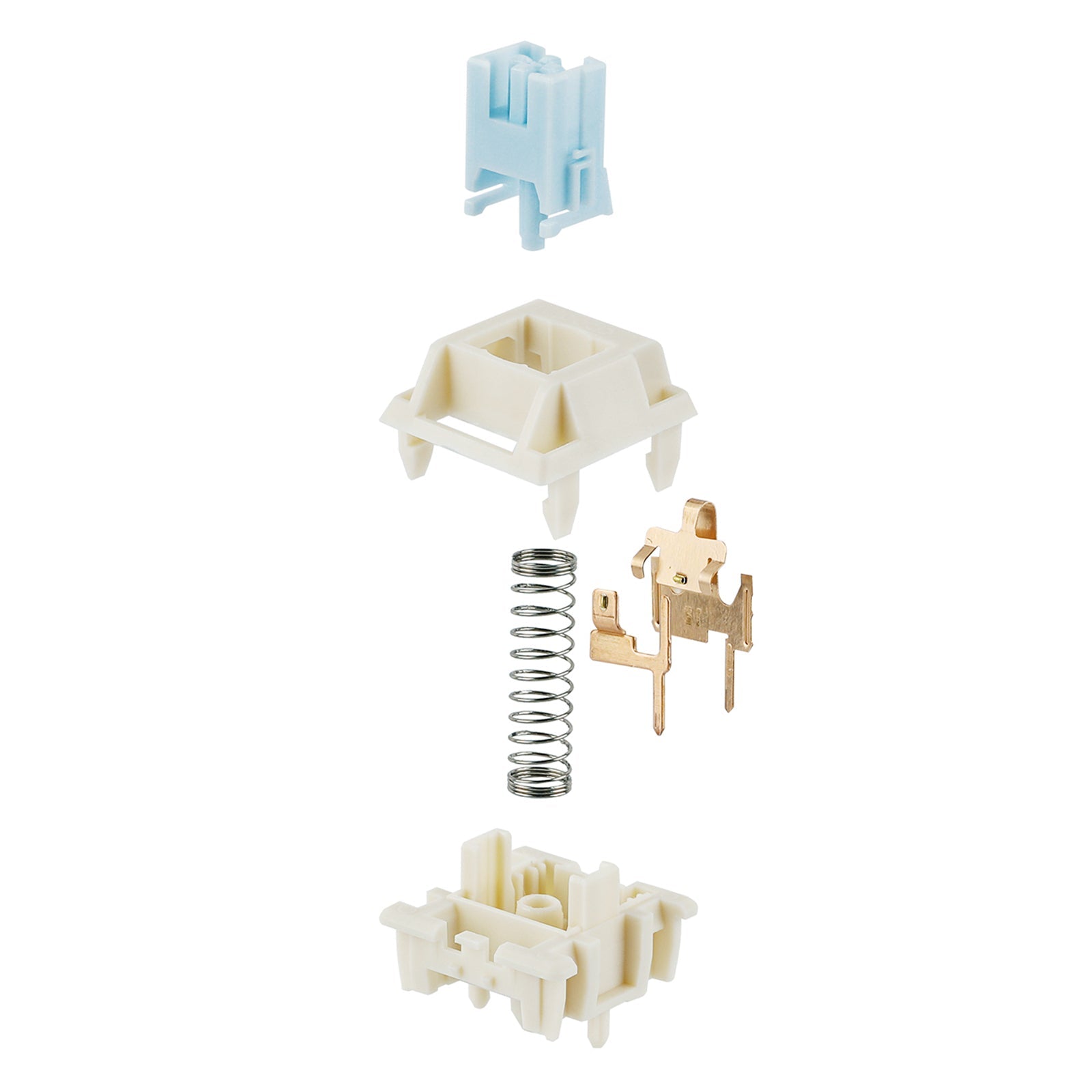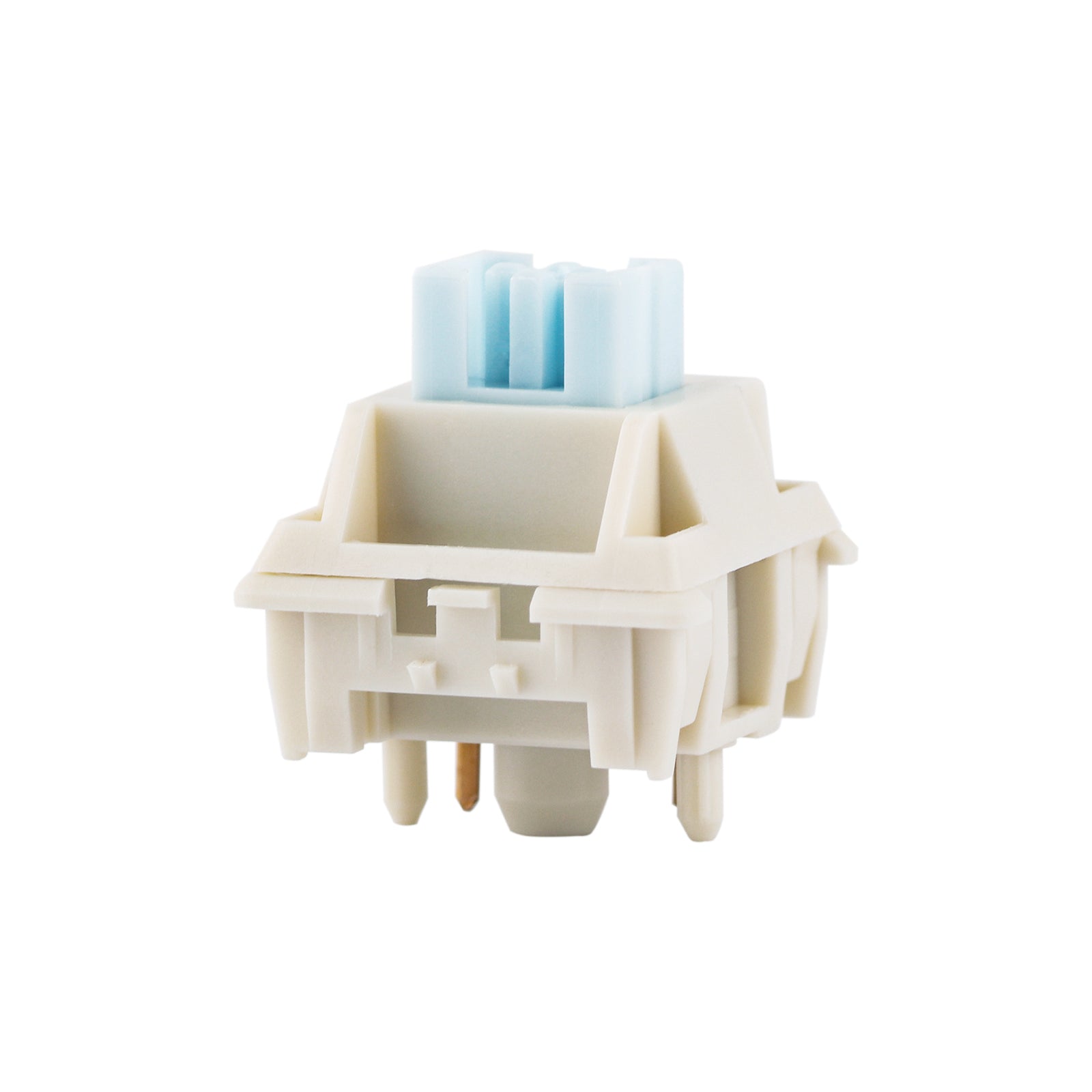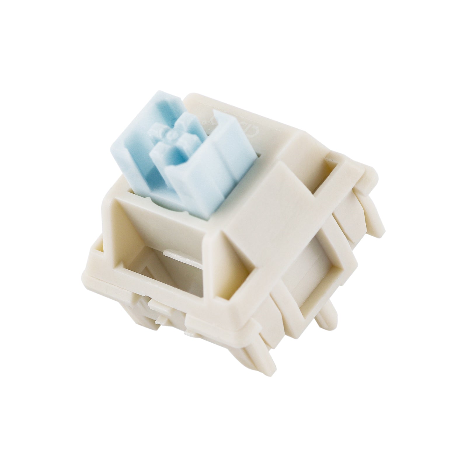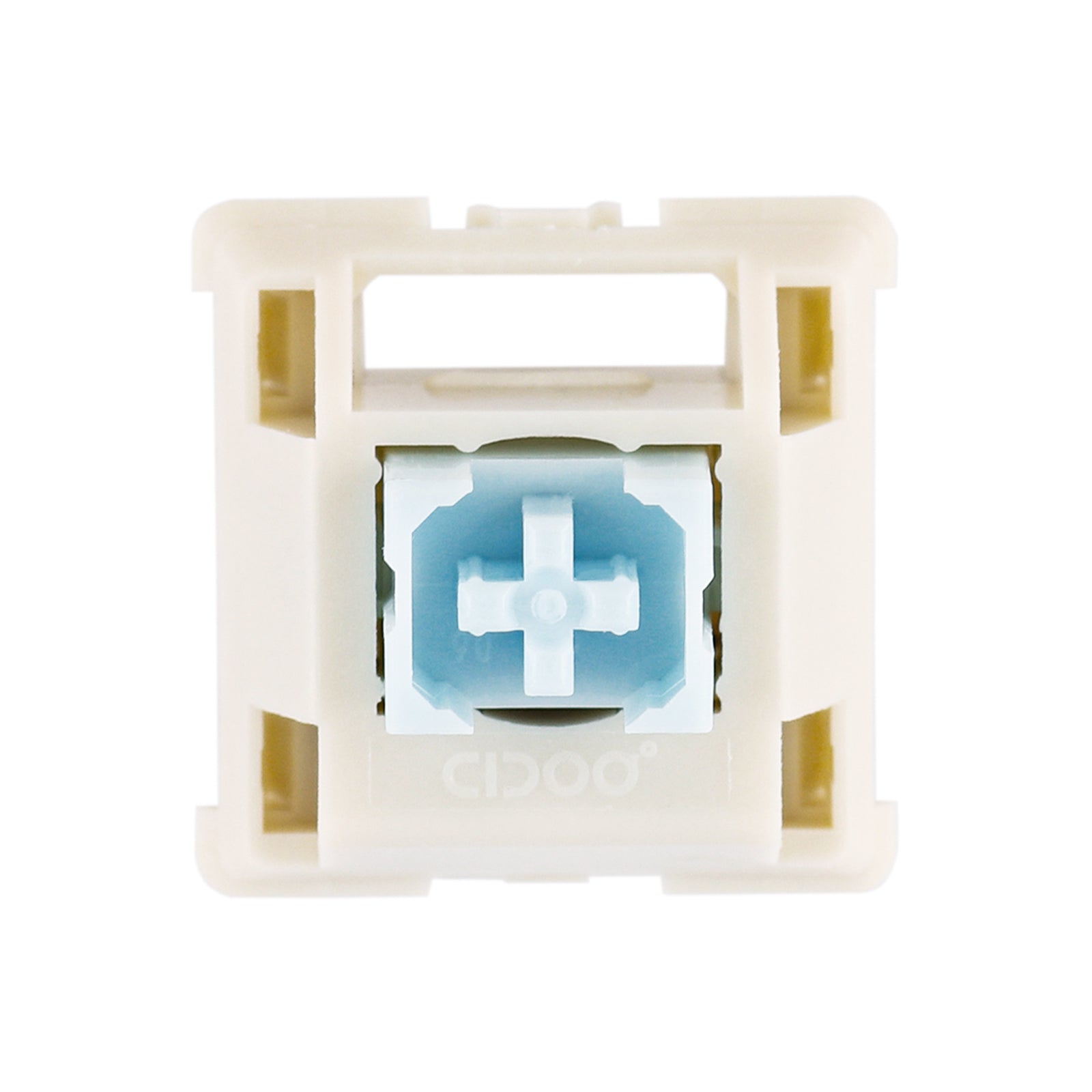The CIDOO Silent Blue Switch boasts a minimalist design with its soothing blue stem housed within a cream-colored base. The color contrast is a visual treat, reminiscent of a clear sky resting above a sandy shore, bringing a sense of calm to any desk setup.
