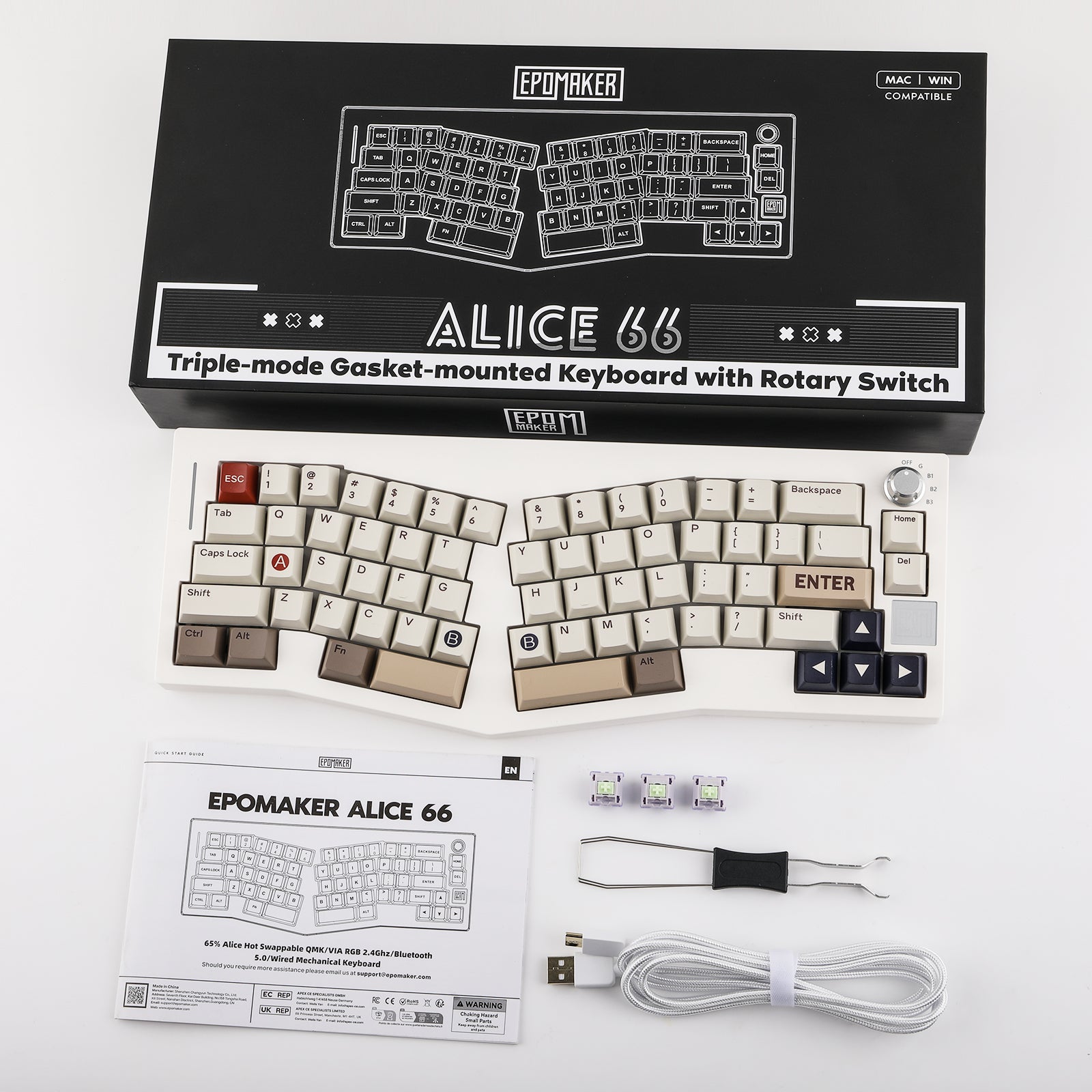 Engineered for both comfort and convenience, the Epomaker Alice 66 features a gasket-mounted design that enhances the overall typing feel by adding a slight flex to the keyboard structure. This is paired with hotswappable sockets across all keys, allowing you to customize or replace switches easily without any soldering required. It's the perfect setup for tinkerers and enthusiasts who love to experiment with their gear.