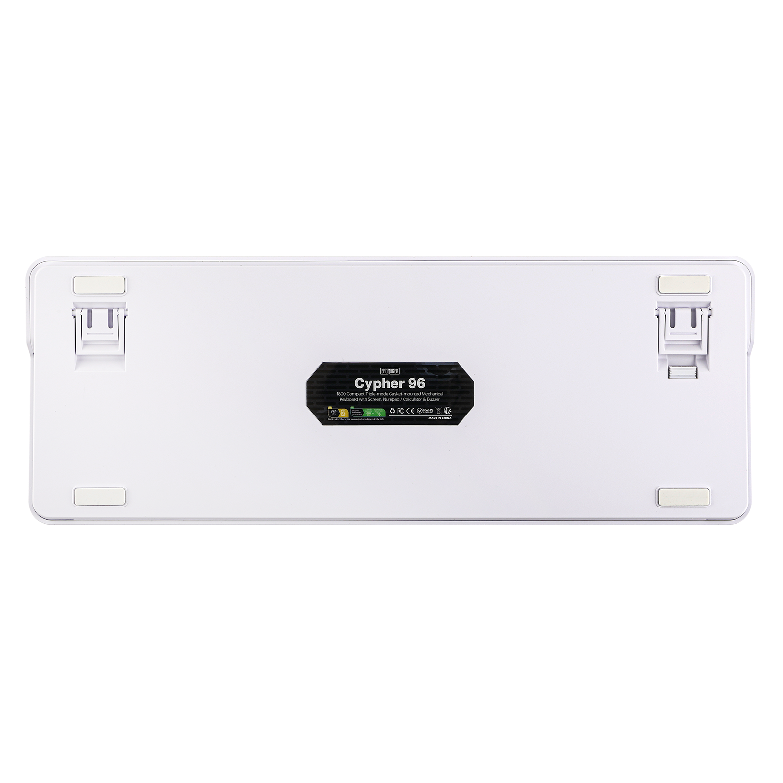 The Cypher 96 offers multiple connectivity options with its tri-mode design, supporting Bluetooth 5.0, 2.4GHz wireless, and wired USB Type-C connections. It can be connected to up to three devices simultaneously via Bluetooth, making multitasking across different setups effortless. Powered by two 4000mAh batteries (8000mAh in total), the keyboard ensures long-lasting performance, allowing you to stay focused on work or gaming without constant recharging.