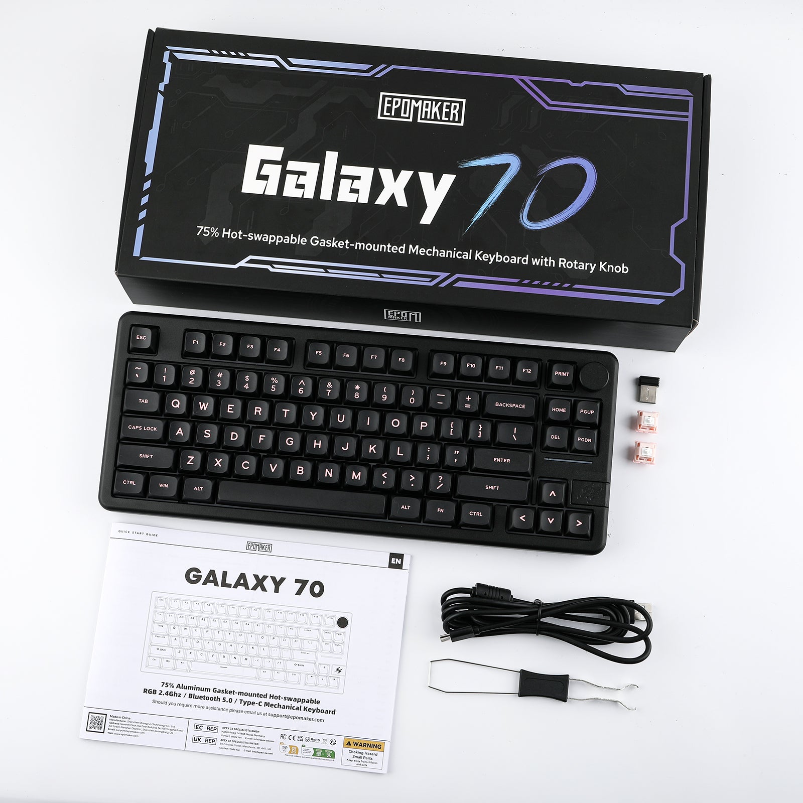 Building on the success of the Galaxy80's TKL layout, Epomaker introduces the Galaxy70 with a 75% layout. The new 75% layout with home clusters and knob configuration is one of the most popular layouts, further optimizing space by removing the numpad while retaining essential keys. The added metal knob not only saves space but also retains functionality. No matter which layout you prefer, the Epomaker Galaxy series has it all.