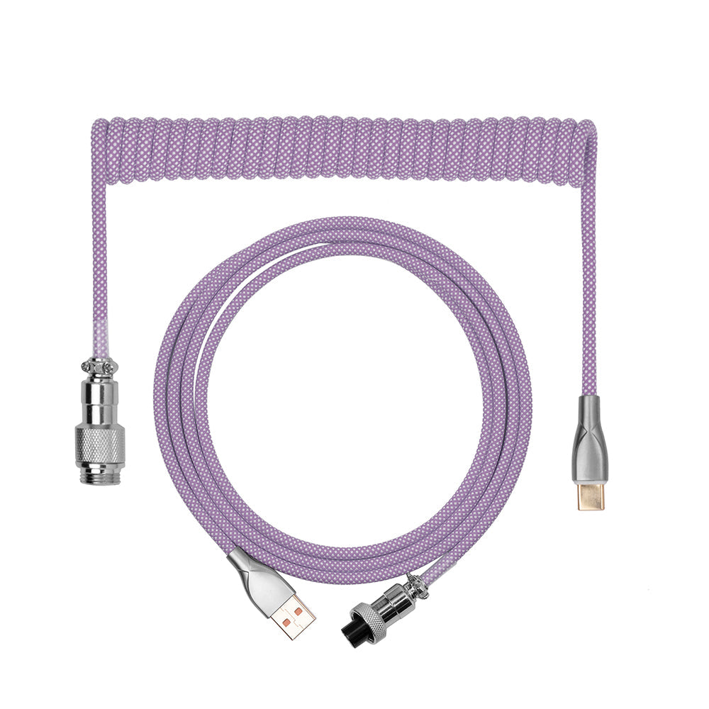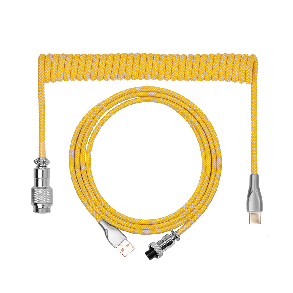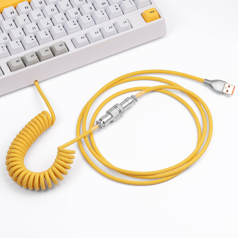 Custom Coiled Double Sleeved Type-C Cable With Detachable Aviator Connector for Mechanical Keyboard