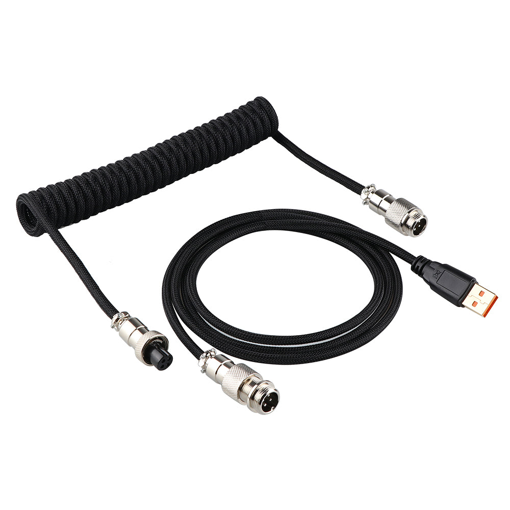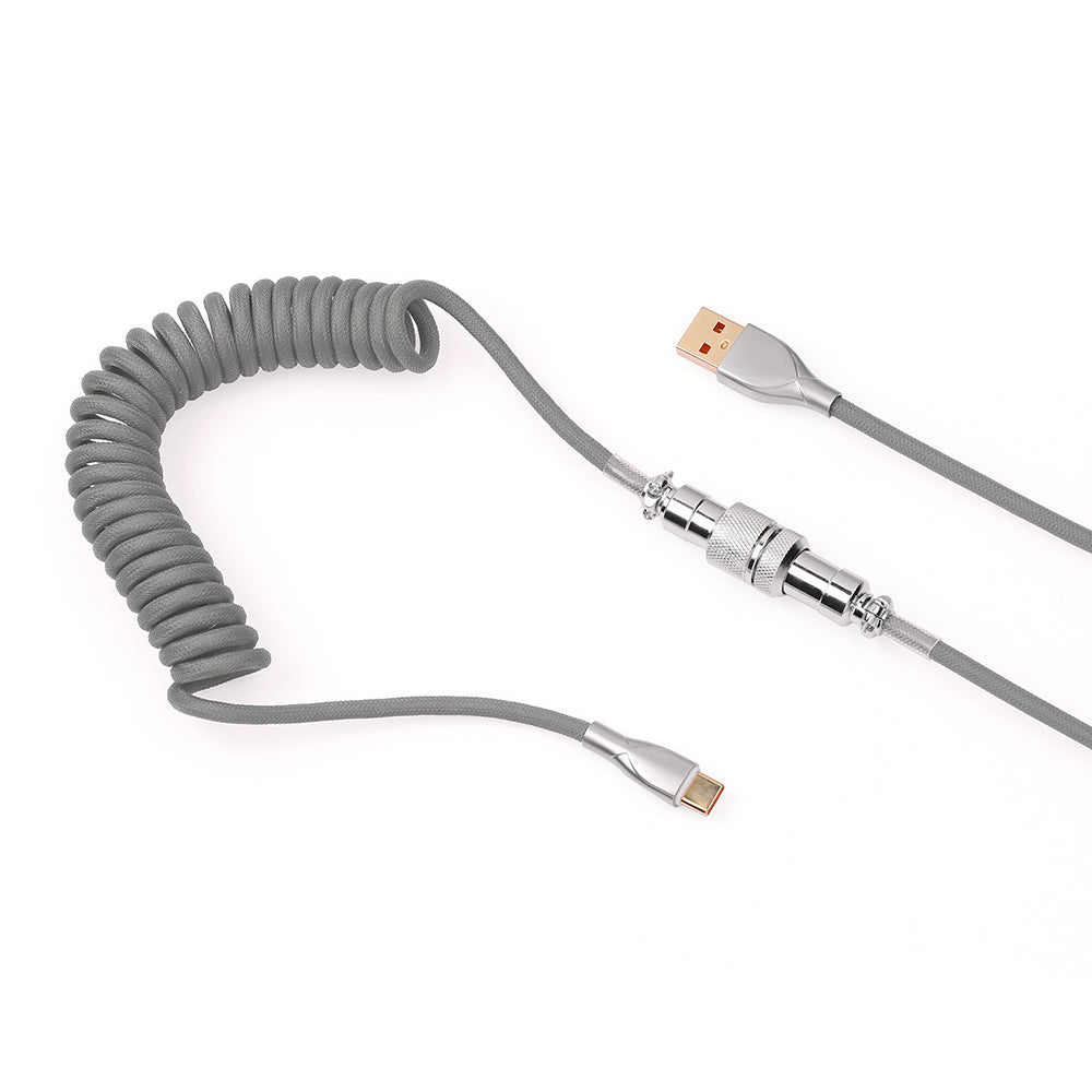 Custom Coiled Double Sleeved Type-C Cable With Detachable Aviator Connector for Mechanical Keyboard