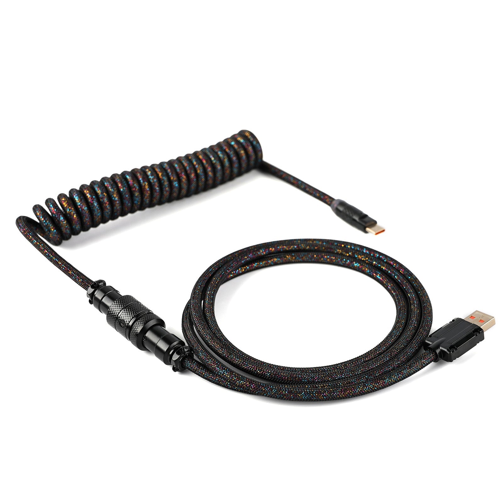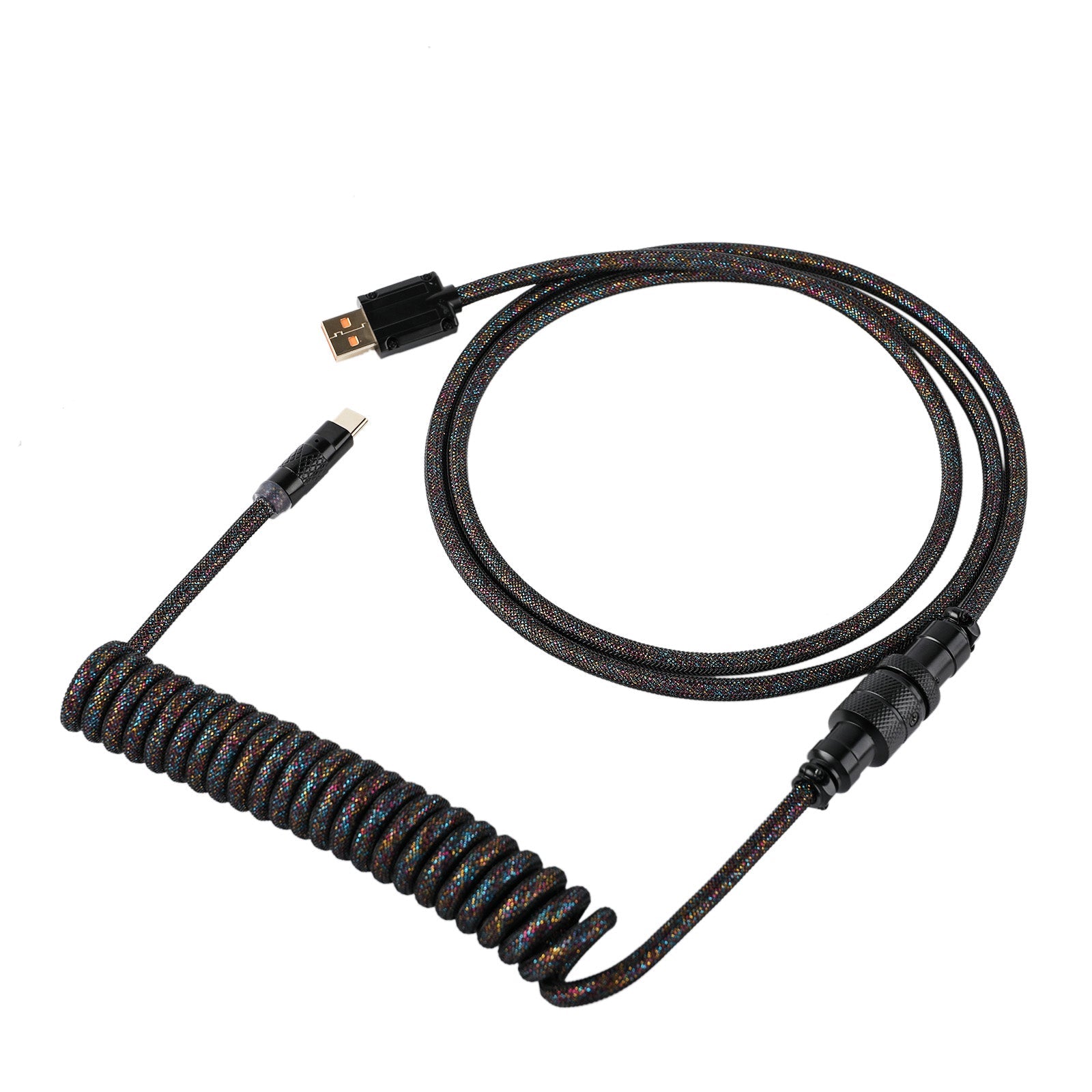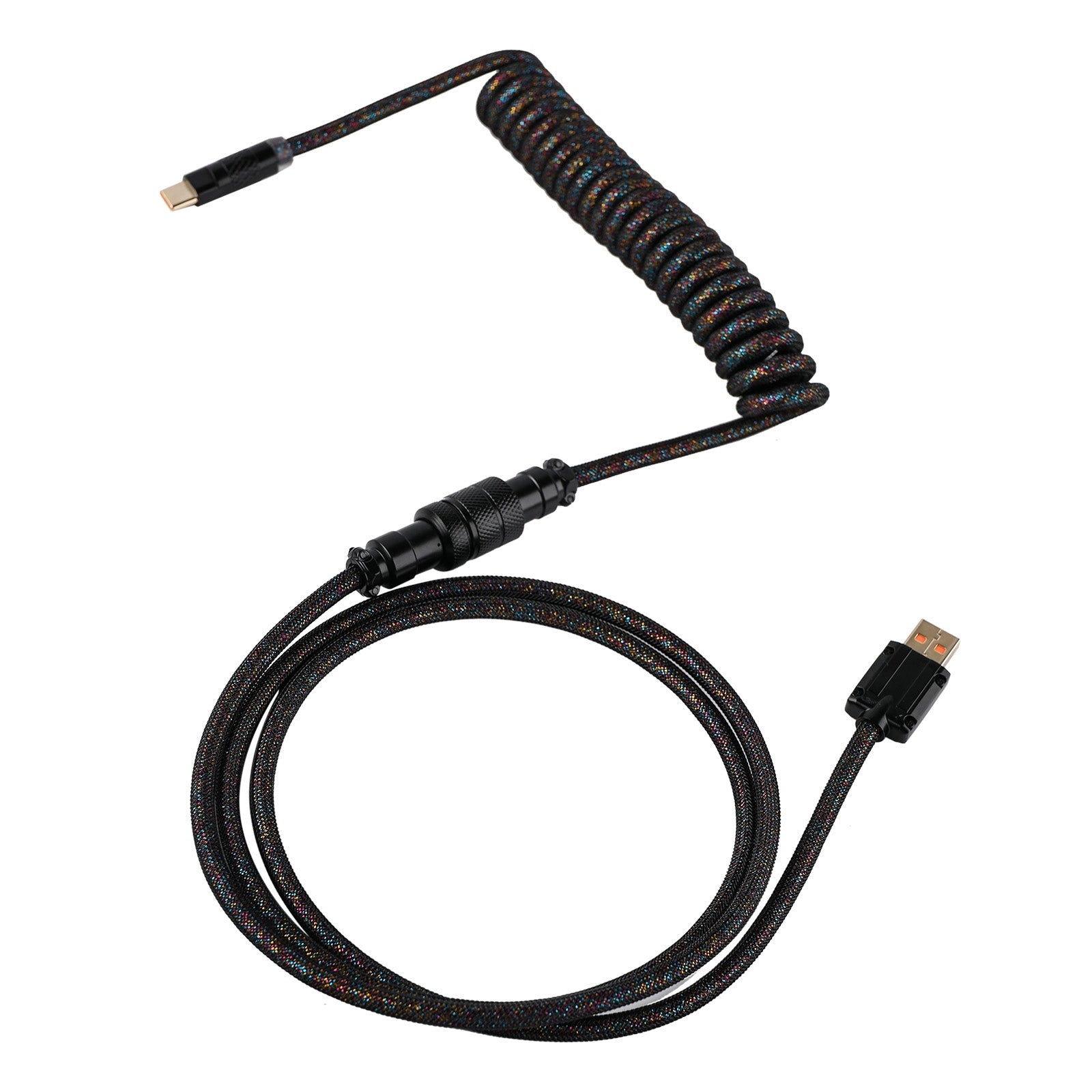 Coiled USB C Cable, 1.5m Double Sleeved Cable for Mechanical Keyboard