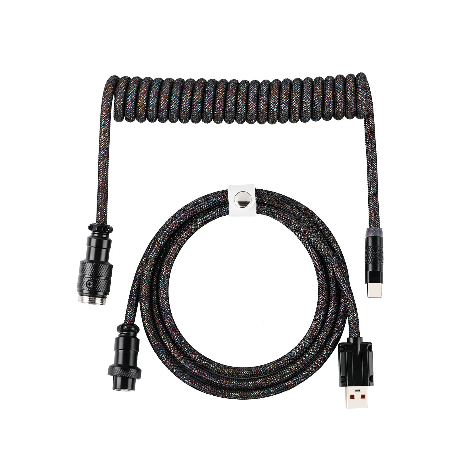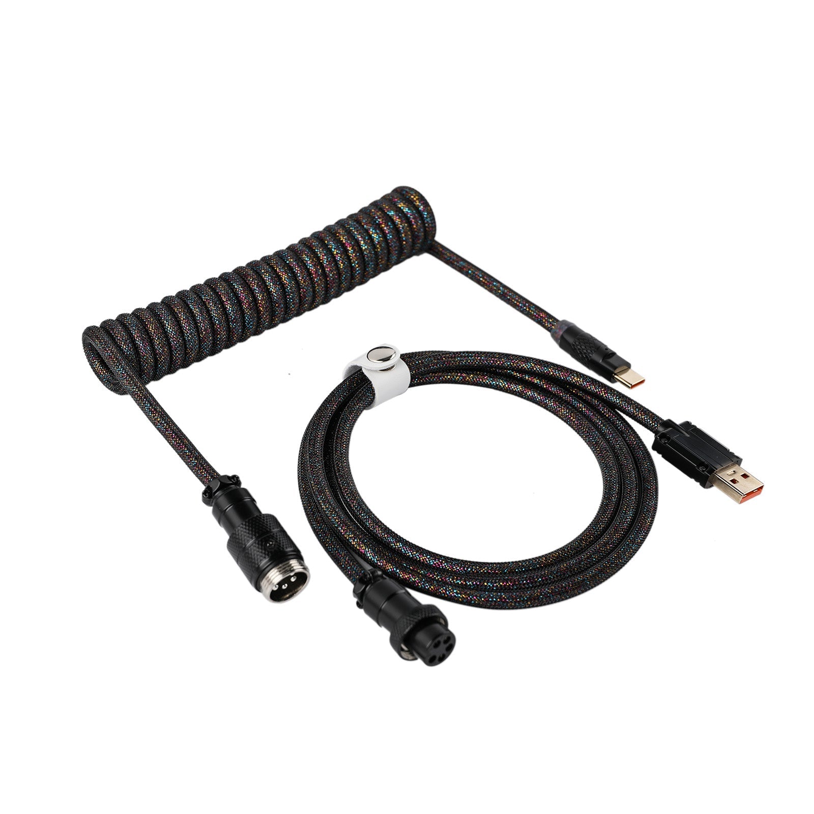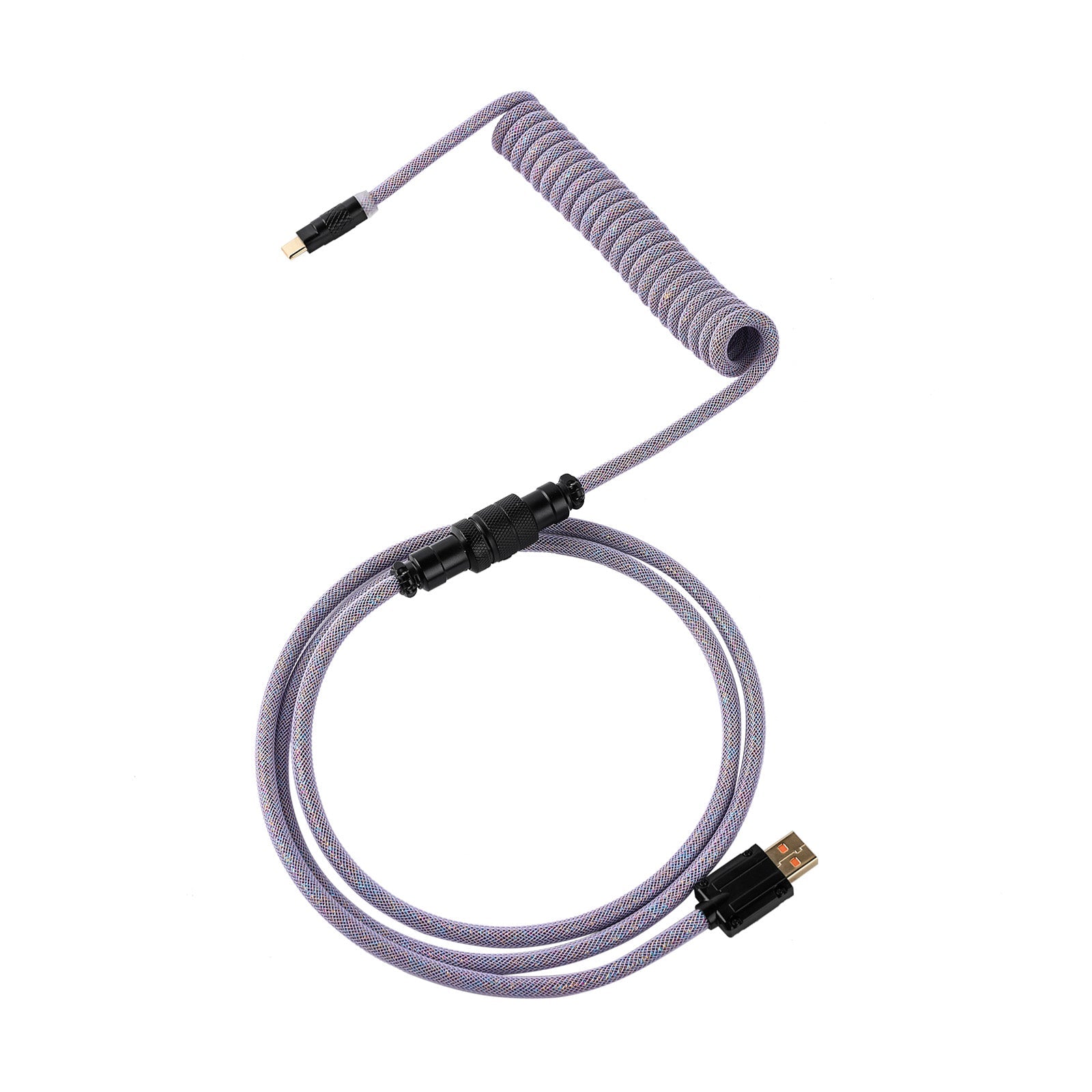 Coiled USB C Cable, 1.5m Double Sleeved Cable for Mechanical Keyboard
